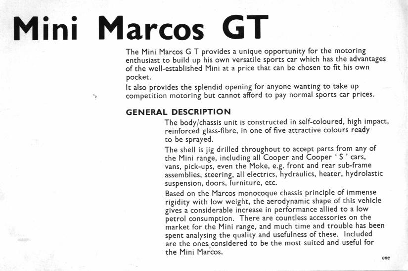 Sales brochure for the Mk. III Mini Marcos, kindly supplied by Colin Ferguson.
